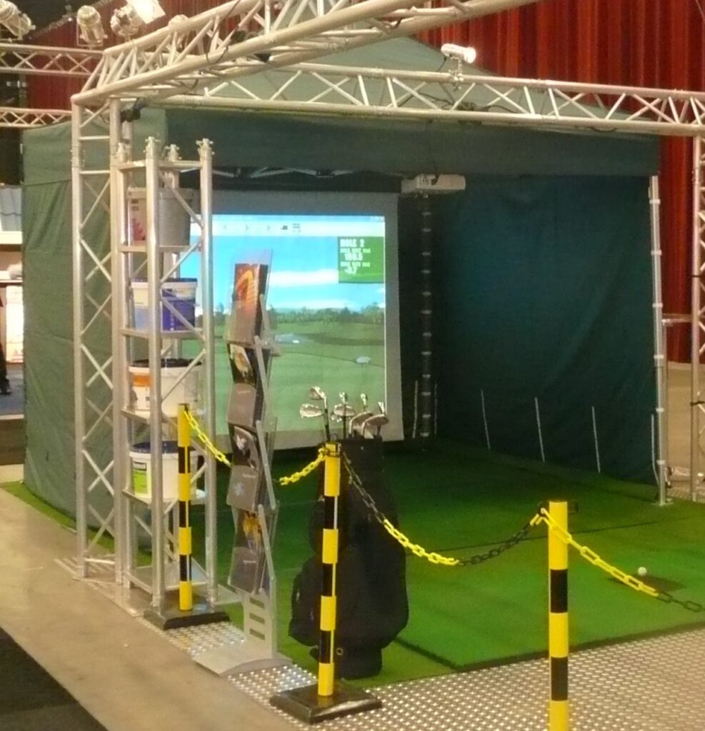 Bij deze variant van de golfsimulator slaan spelers in een opvangnet. De vlucht van de bal en een uitgebreide en gedetailleerde swinganalyse wordt weergegeven op een TV-scherm.
